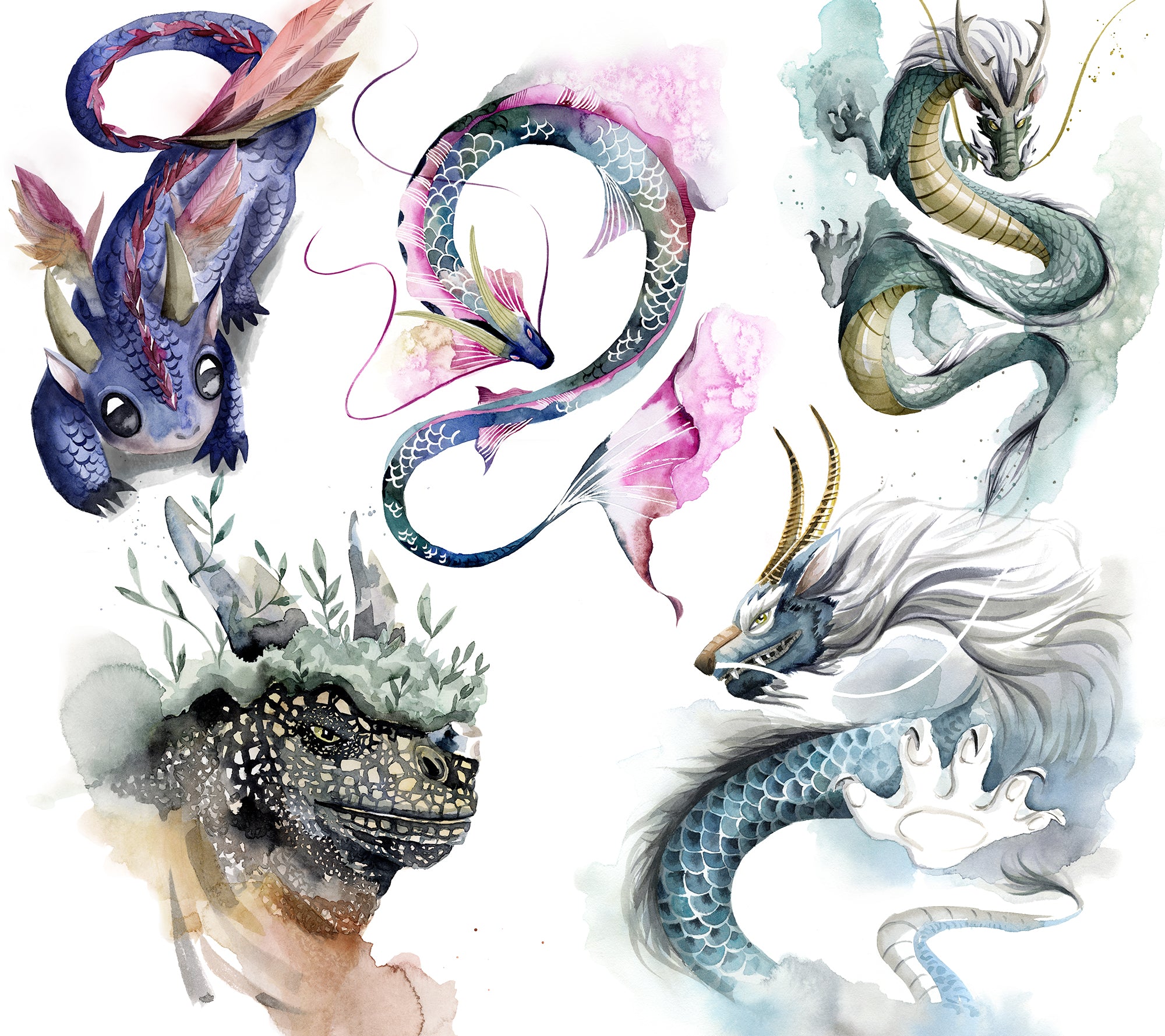198 watercolour dragons I painted for Stonemaier Games’ Wyrmspan and Dragon Academy,...