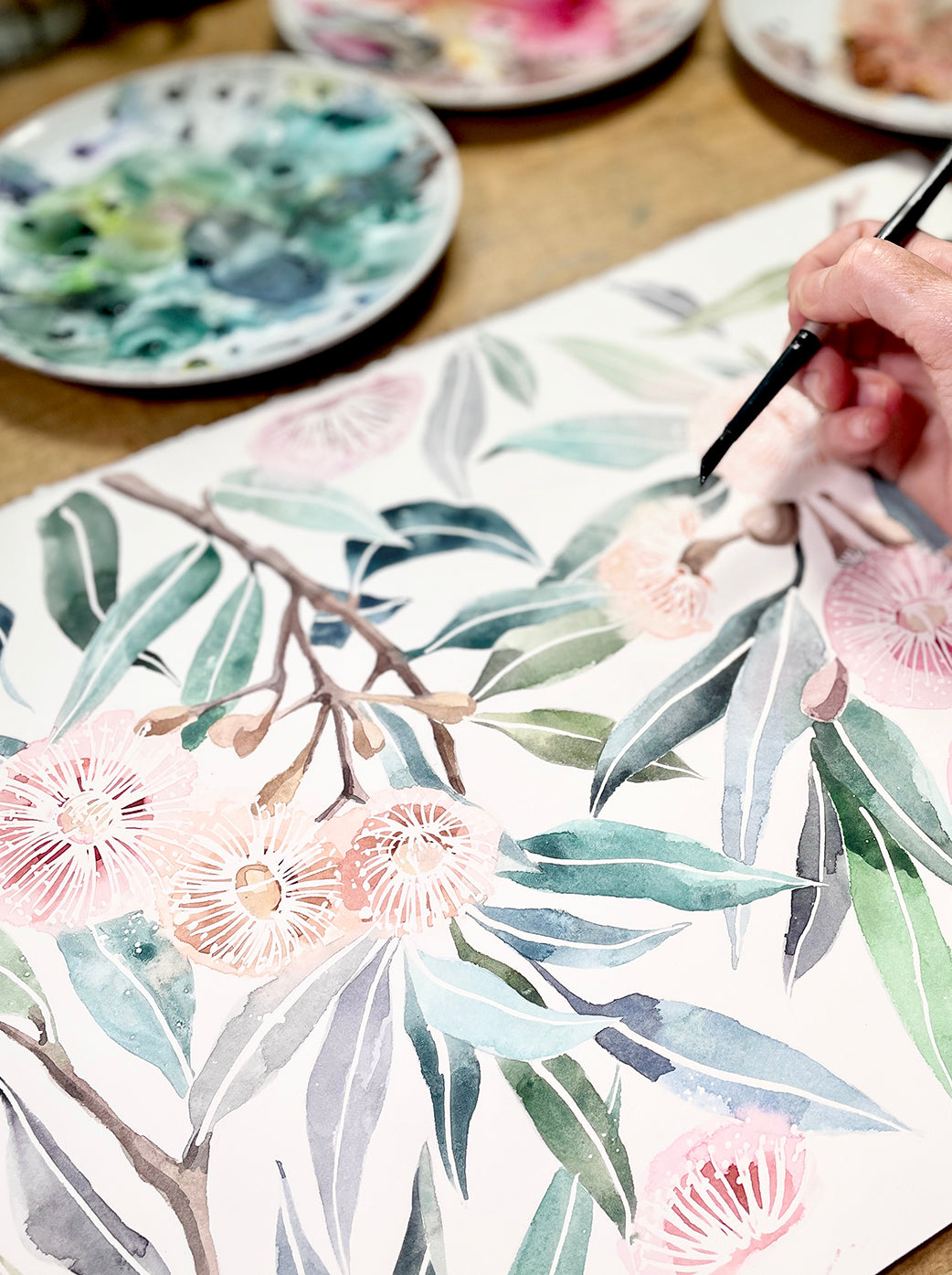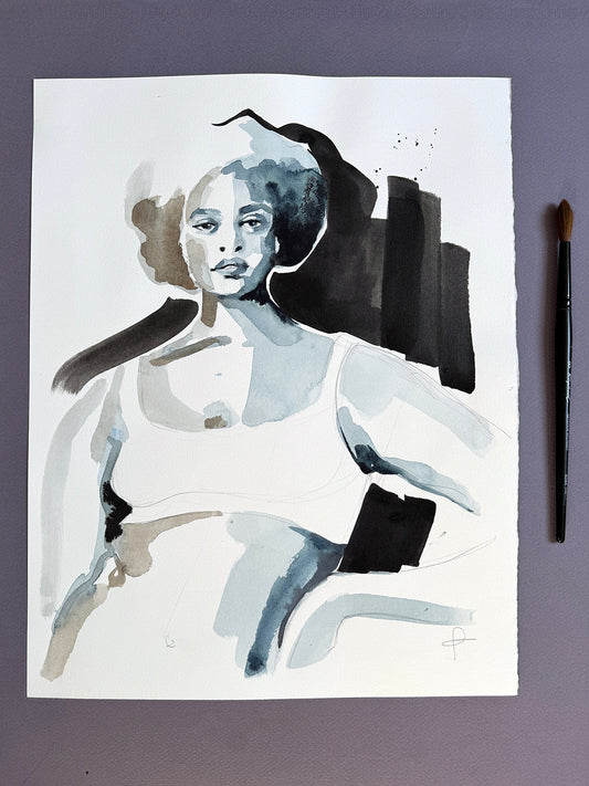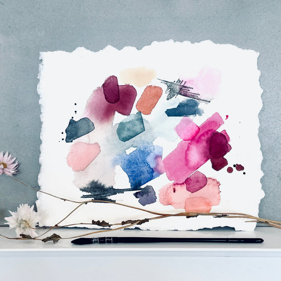 Watercolour, ink, acrylic… whatever inspires me in the moment, on watercolour paper.