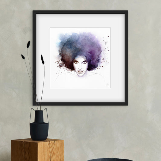Prince has been a huge source of inspiration for me over the years. I've always admired his genius, his singularity, and all the characters he created throughout his legendary career. These exclusive limited edition prints are my tribute to the Purple One, luxury watercolour art that captures his iconic spirit and style.
