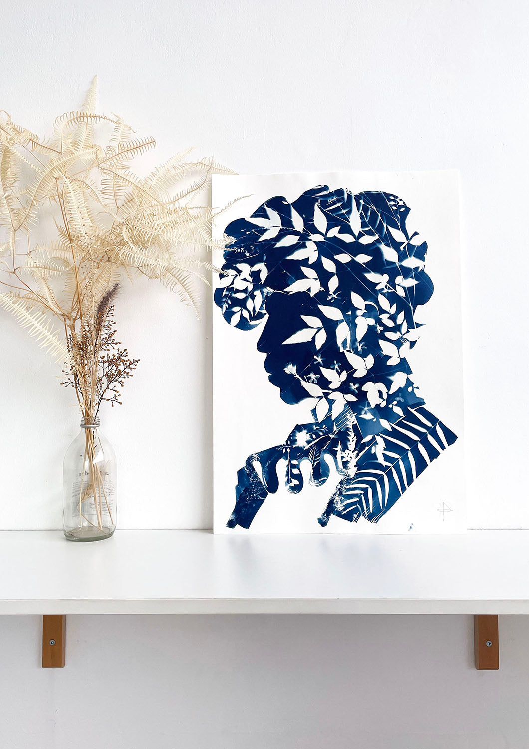 This Prince's portrait was created with the Cyanotype photographic process, using the sunlight as a printer, and the beautiful Australian plants collected around my little studio in Sydney.