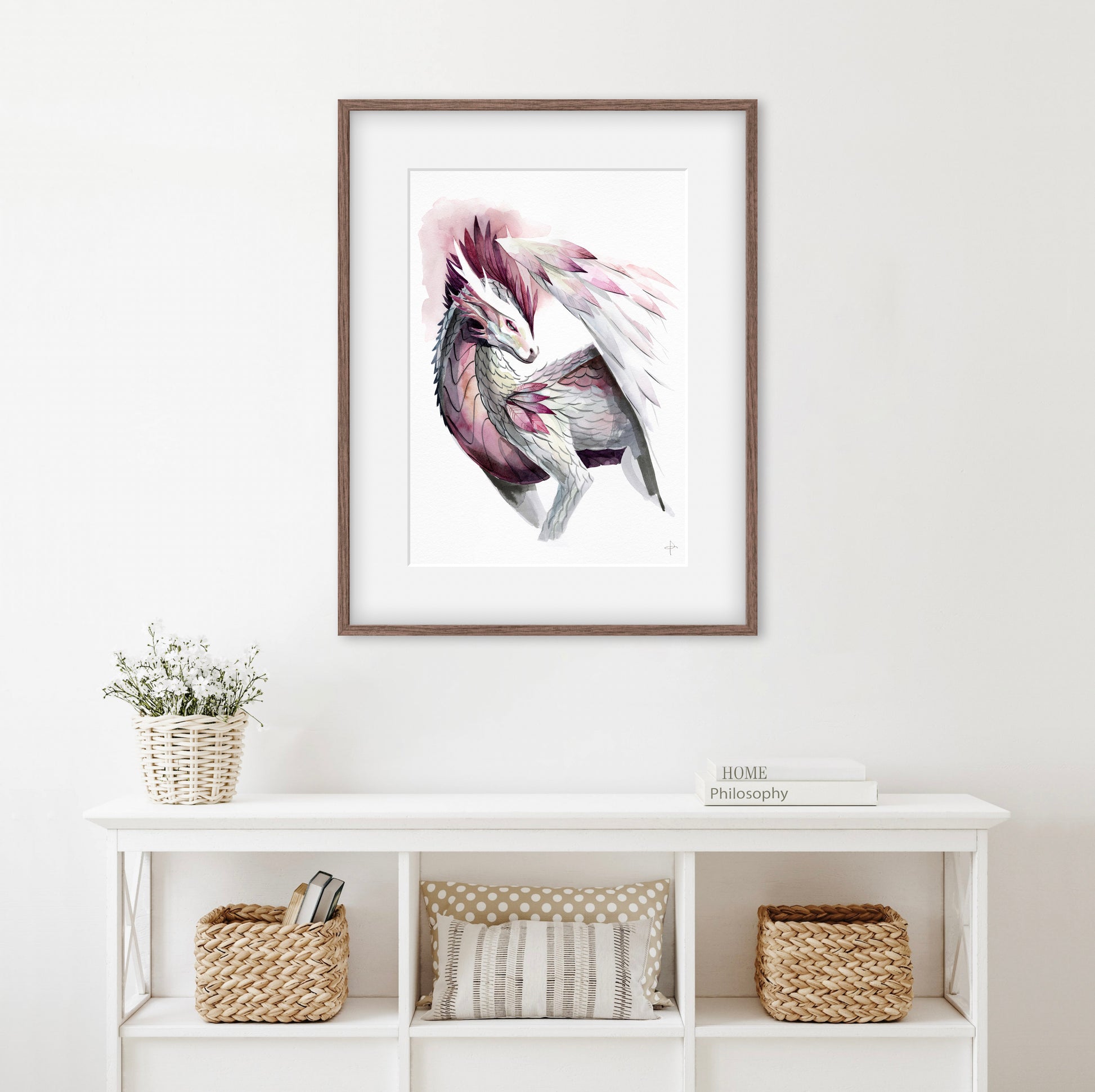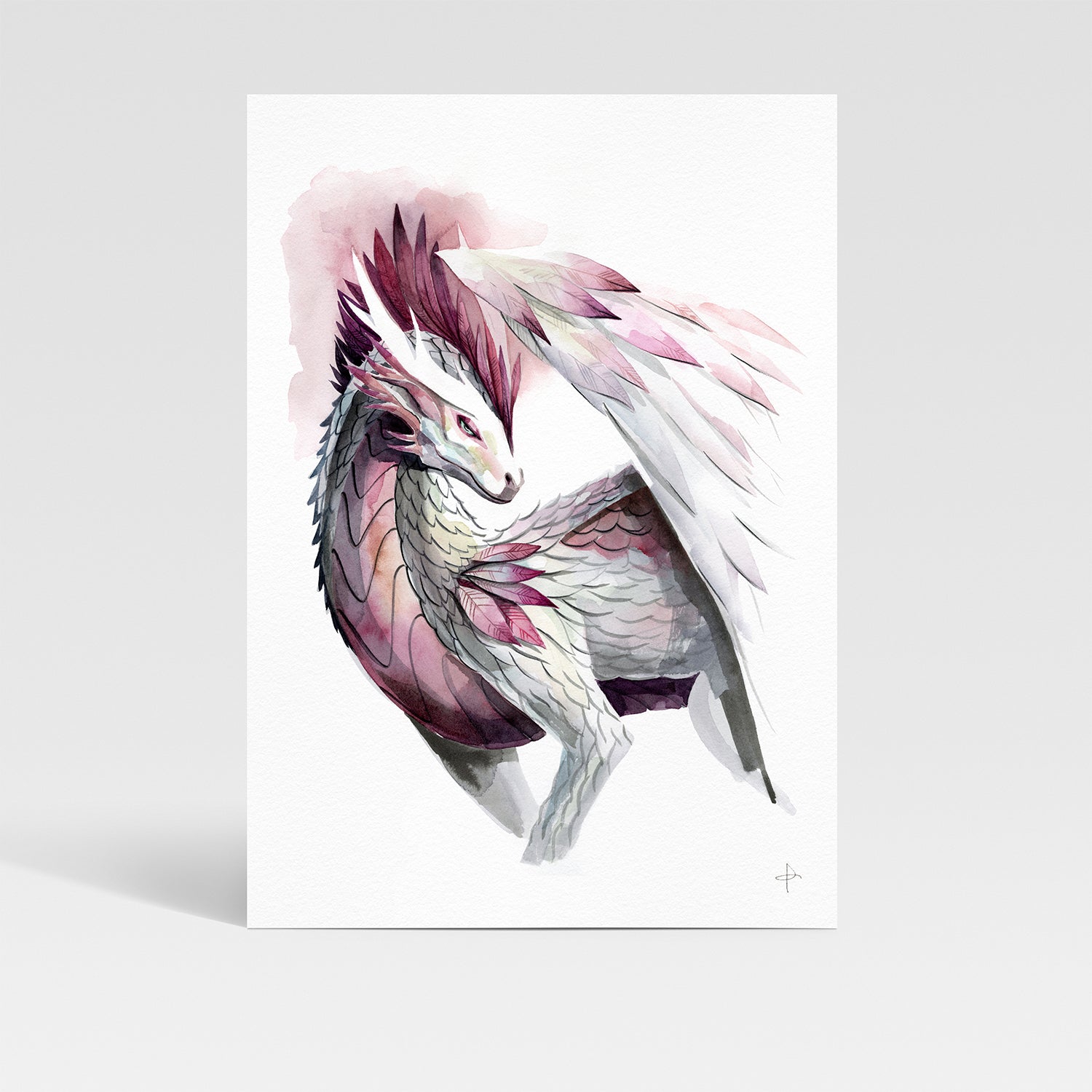 This mysterious dragon watercolour illustration was originally commissioned for Stonemaier Games' Wyrmspan boardgame, capturing the haunting beauty of fantasy dragon art.