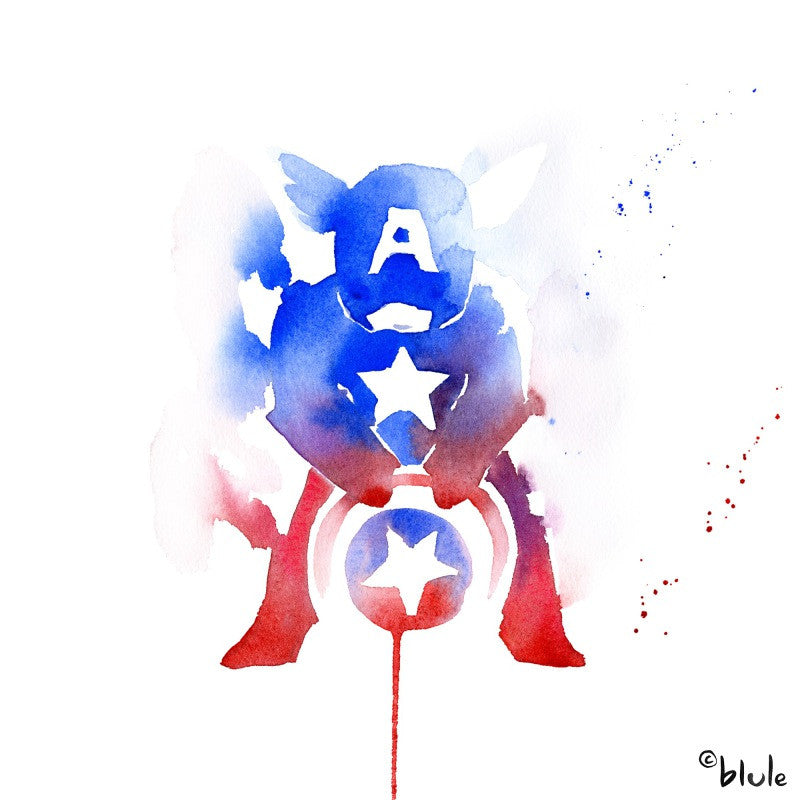Mini Superhero. The first avenger: Captain America in watercolour.