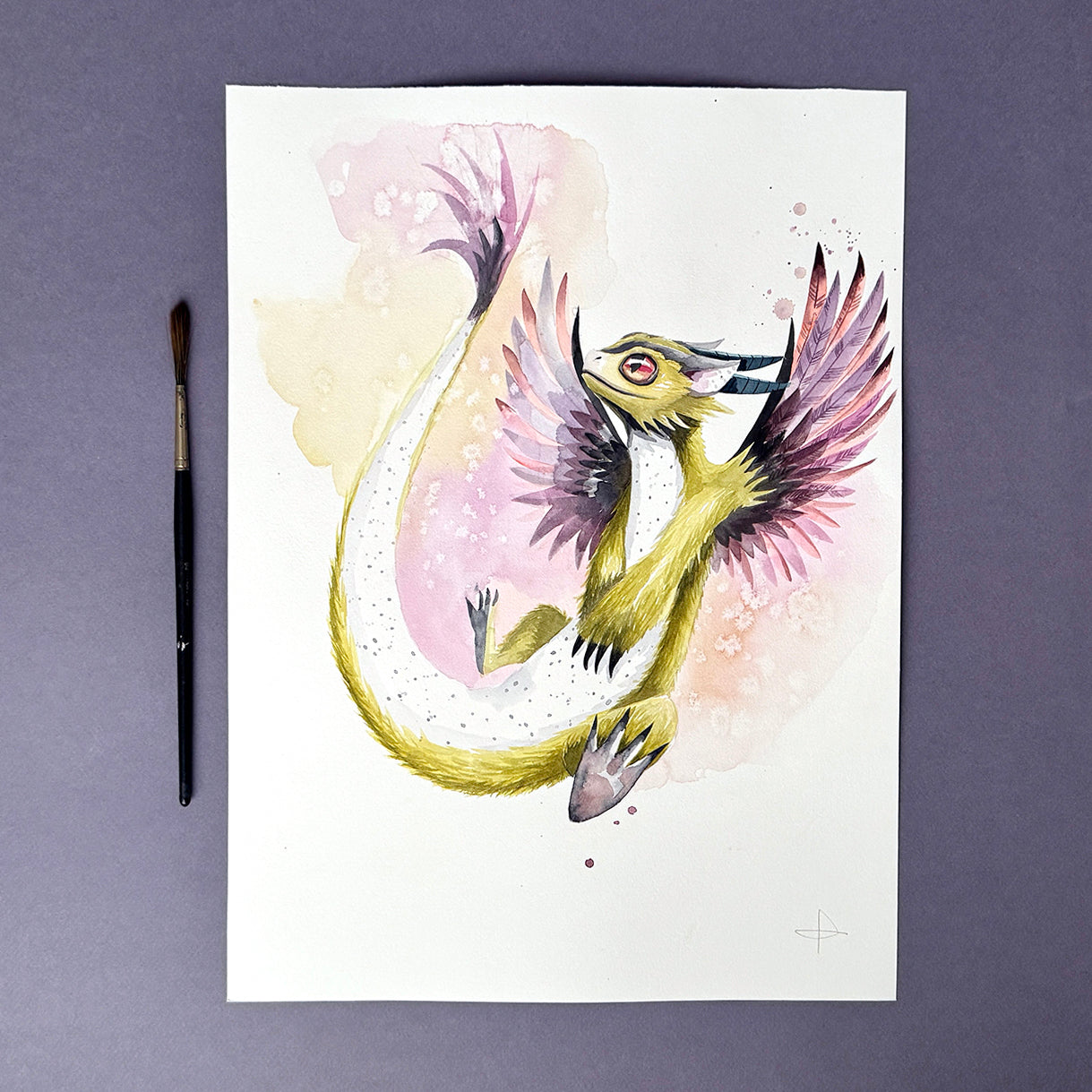 This bubbly dragon watercolour illustration was originally commissioned for Stonemaier Games' Wyrmspan boardgame, capturing the effervescent spirit of fantasy dragon art.